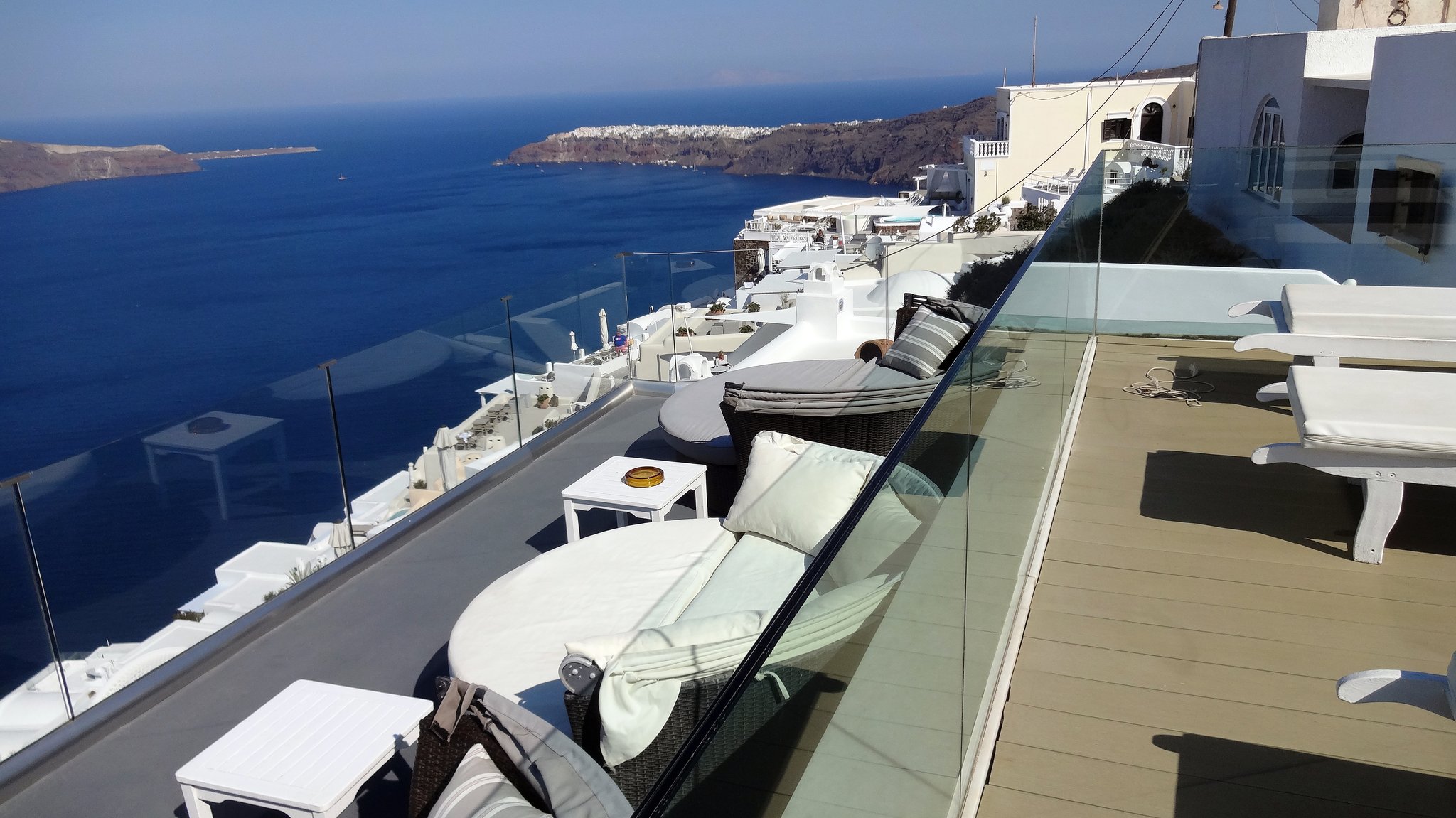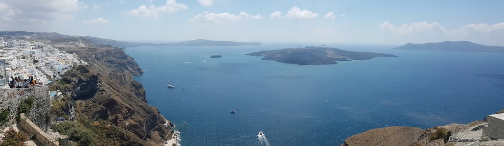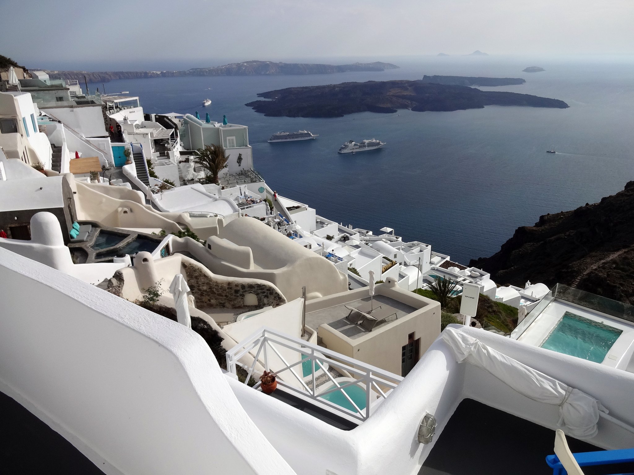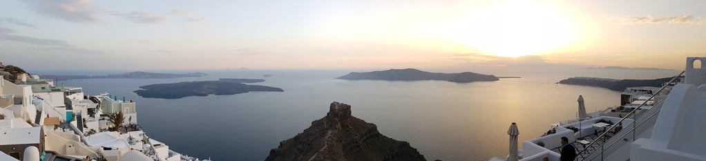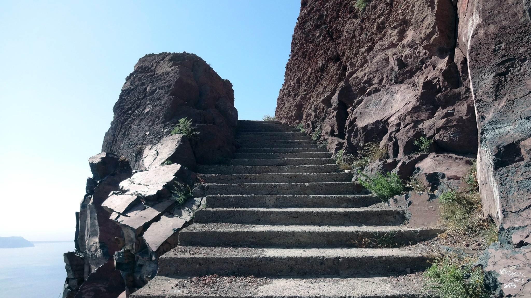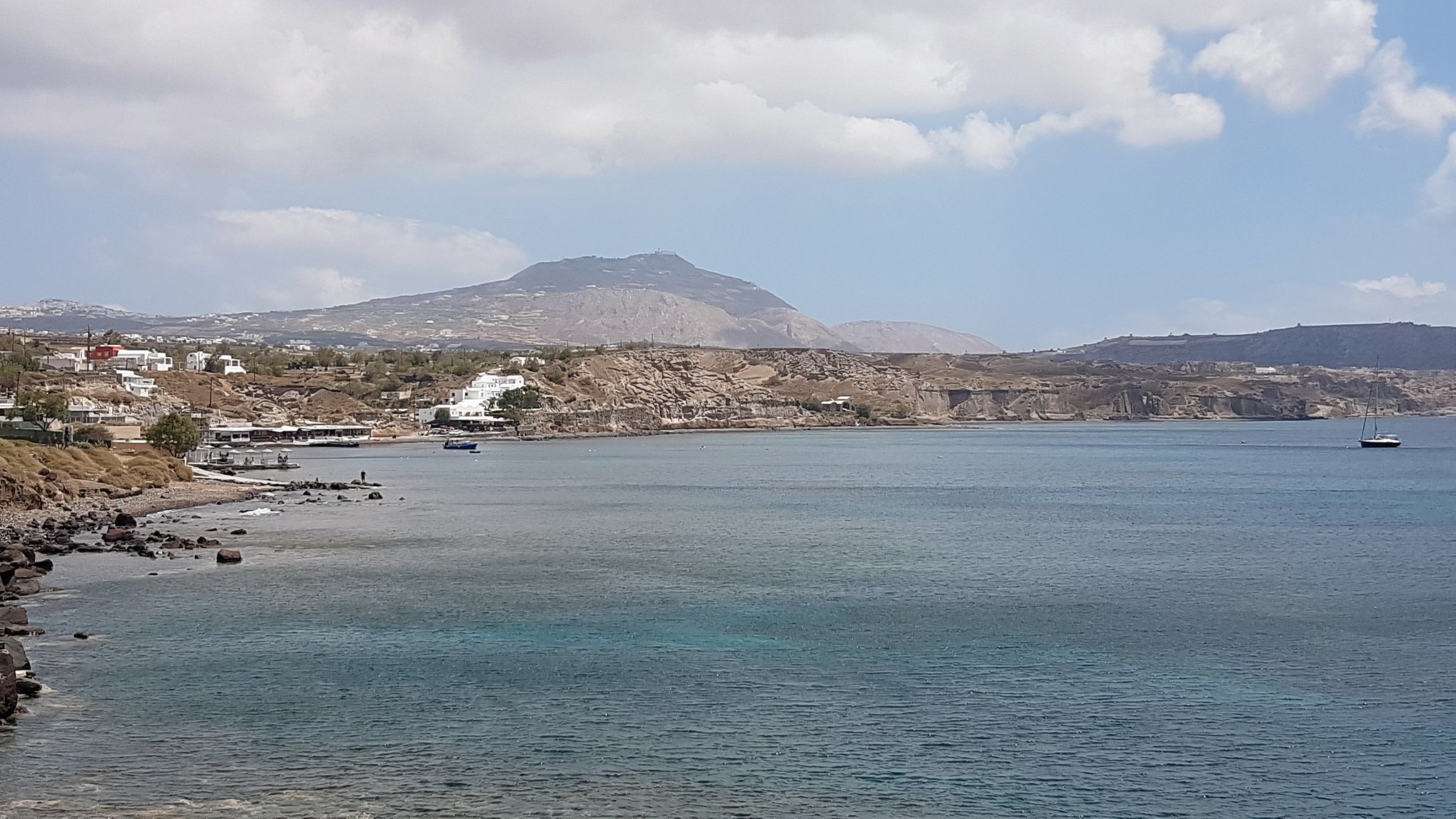 SKAROS ROCK IMEROVIGLI - direkt vor unserer Terrasse. Die Ruinen von Skaros sind heute ein beliebtes Ausflugsziel für Wanderer und Fotografen; die Landzunge ist über Imerovigli zu erreichen. Kein einfacher Auf- und/oder Abstieg und gutes Schuhwerk ist ein Must. Stefan hat den Skaros Rock bezwungen.