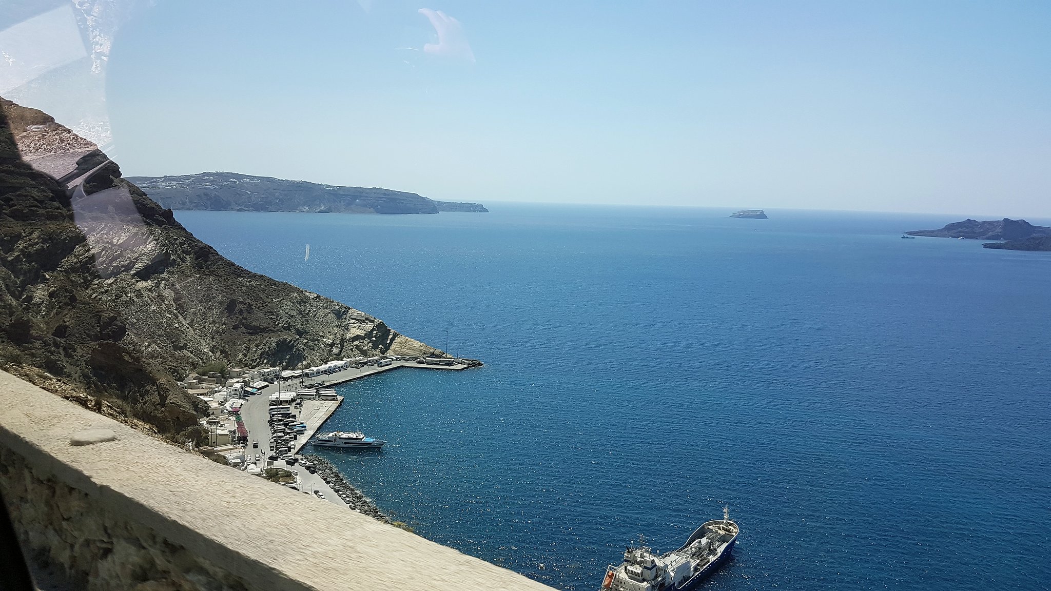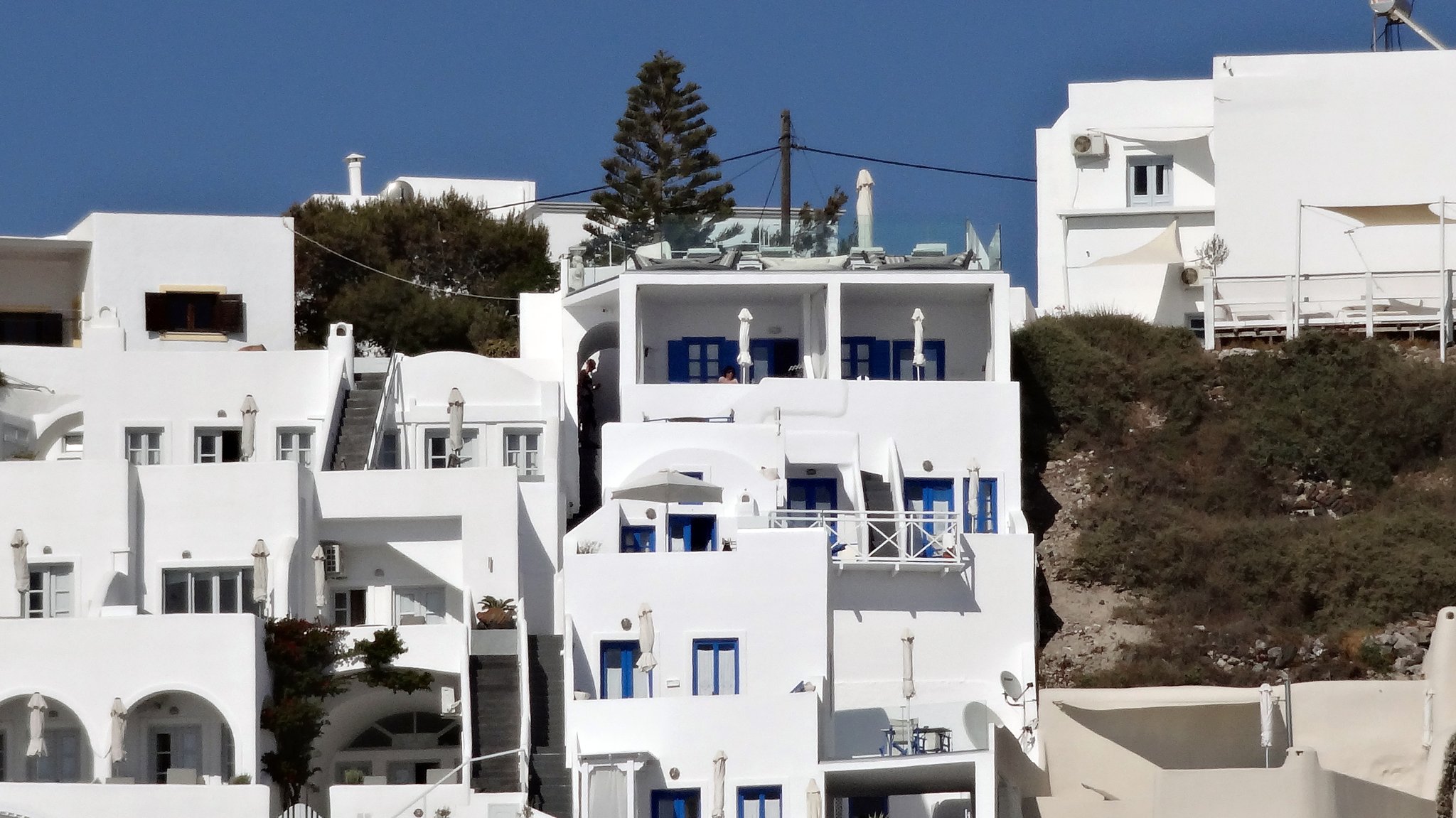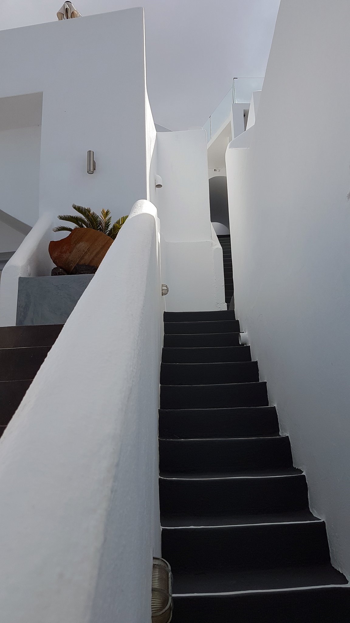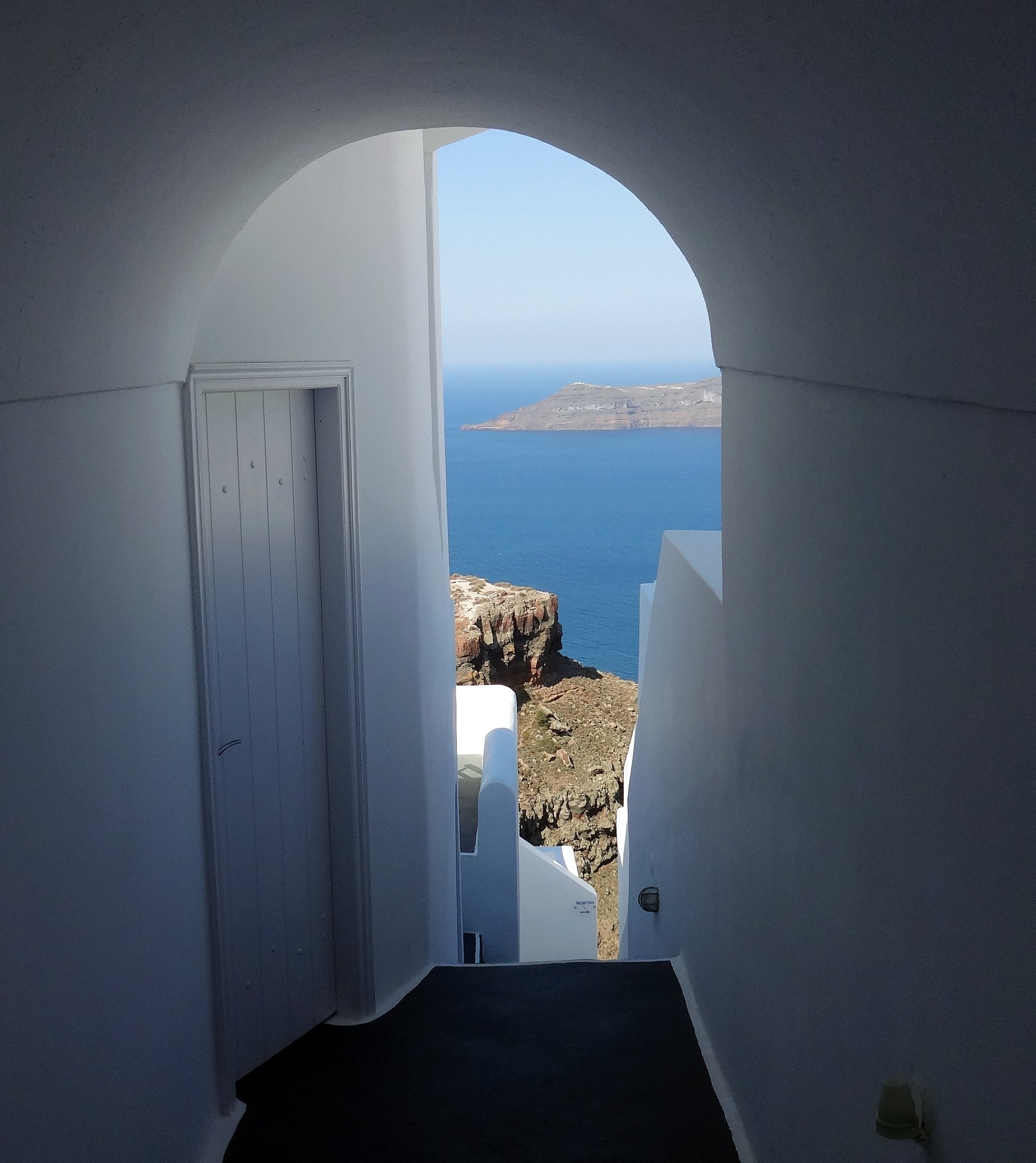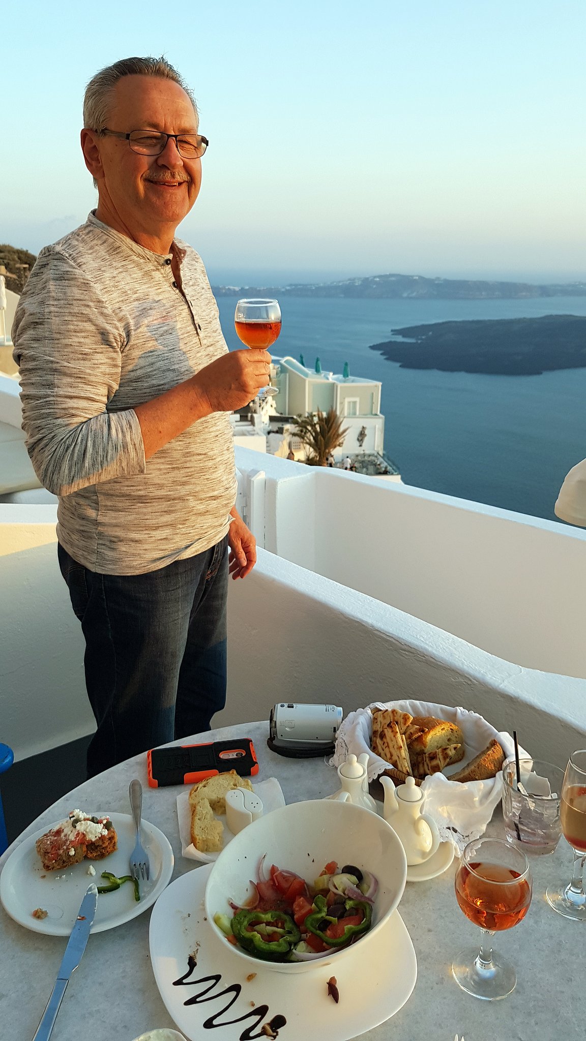 SKAROS ROCK IMEROVIGLI - direkt vor unserer Terrasse. Die Ruinen von Skaros sind heute ein beliebtes Ausflugsziel für Wanderer und Fotografen; die Landzunge ist über Imerovigli zu erreichen. Kein einfacher Auf- und/oder Abstieg und gutes Schuhwerk ist ein Must. Stefan hat den Skaros Rock bezwungen.