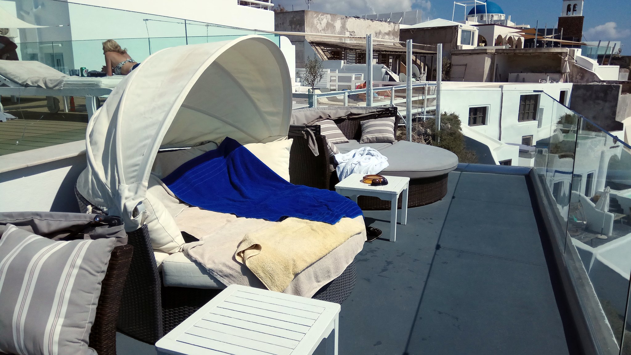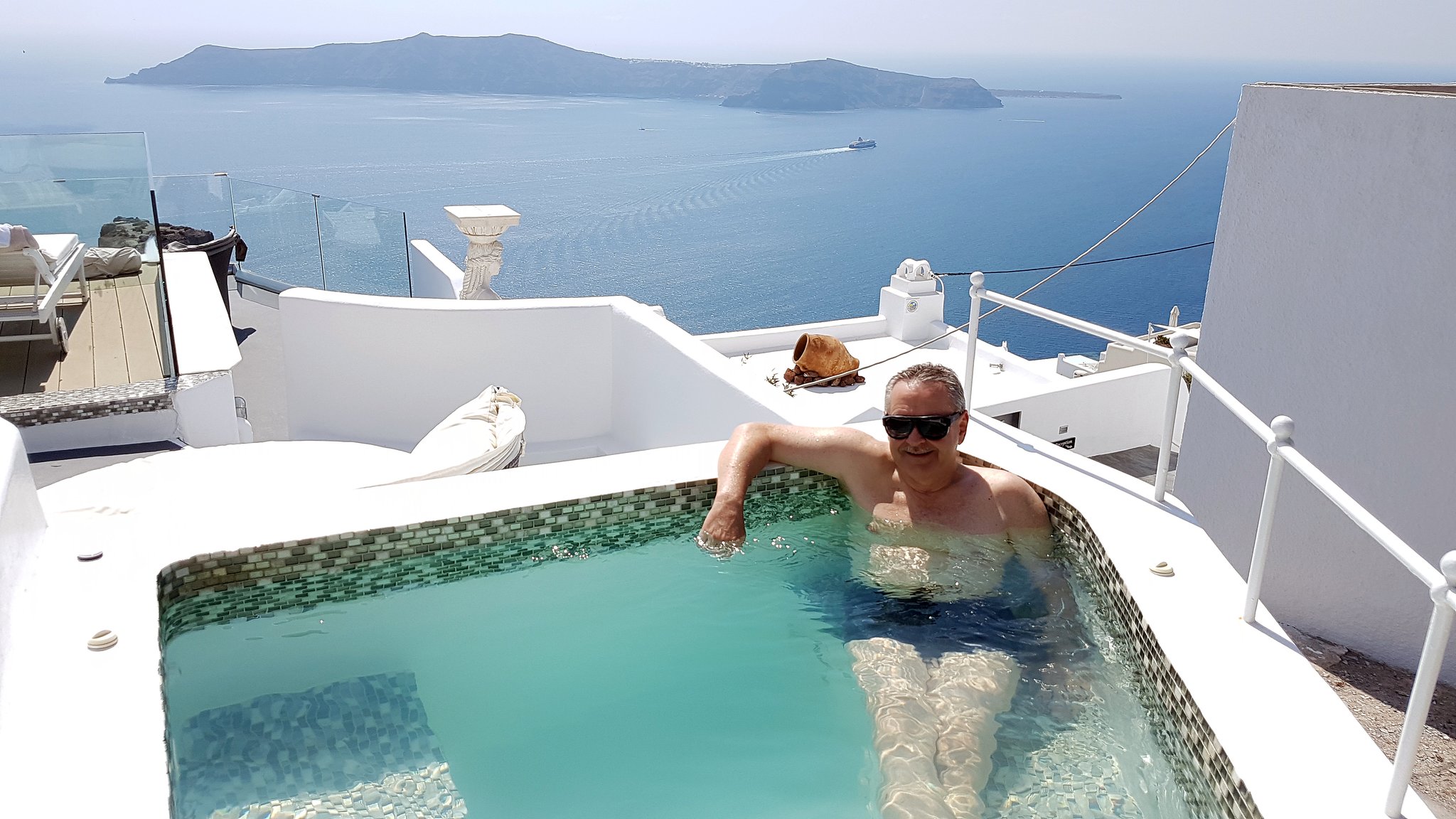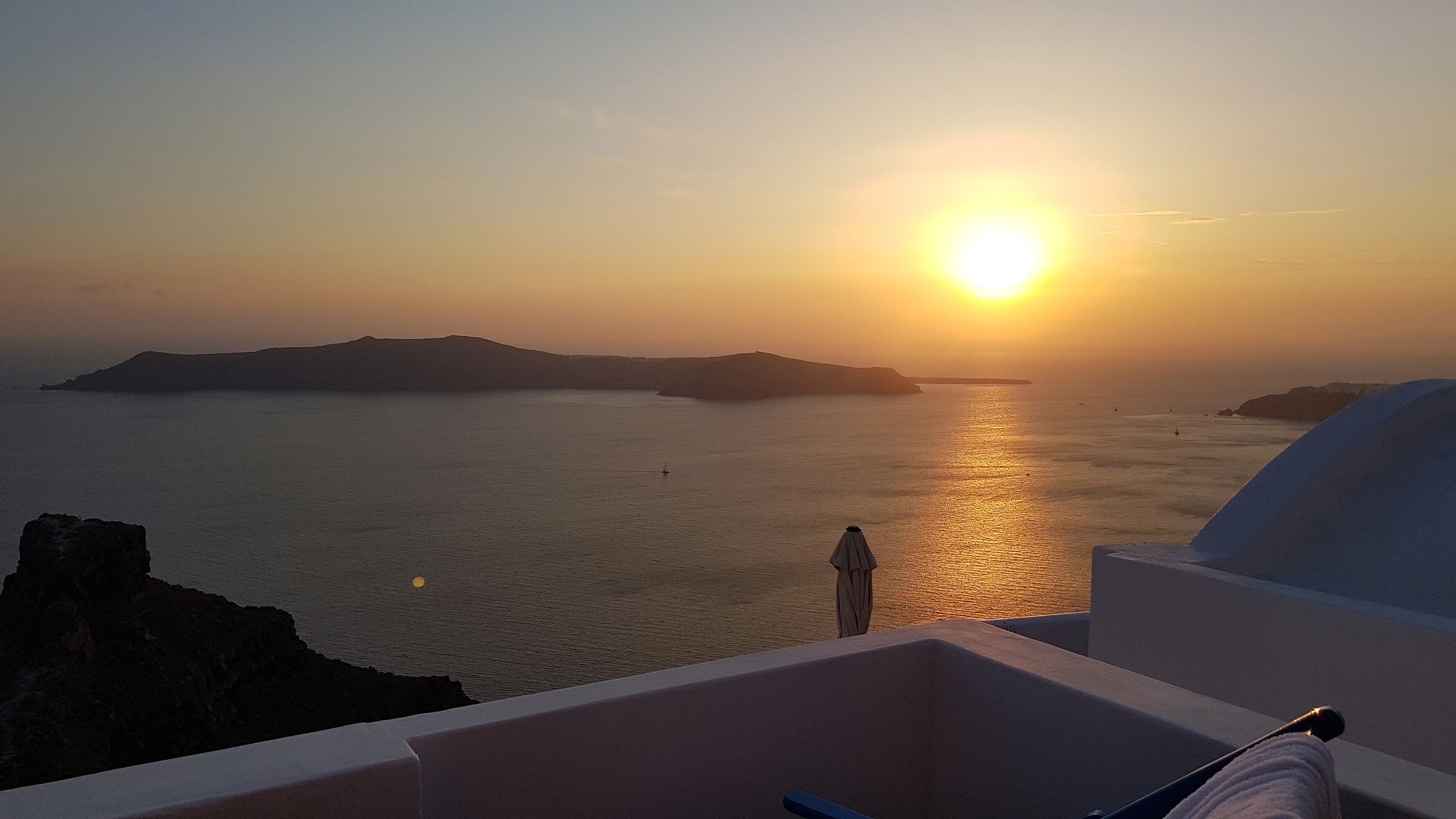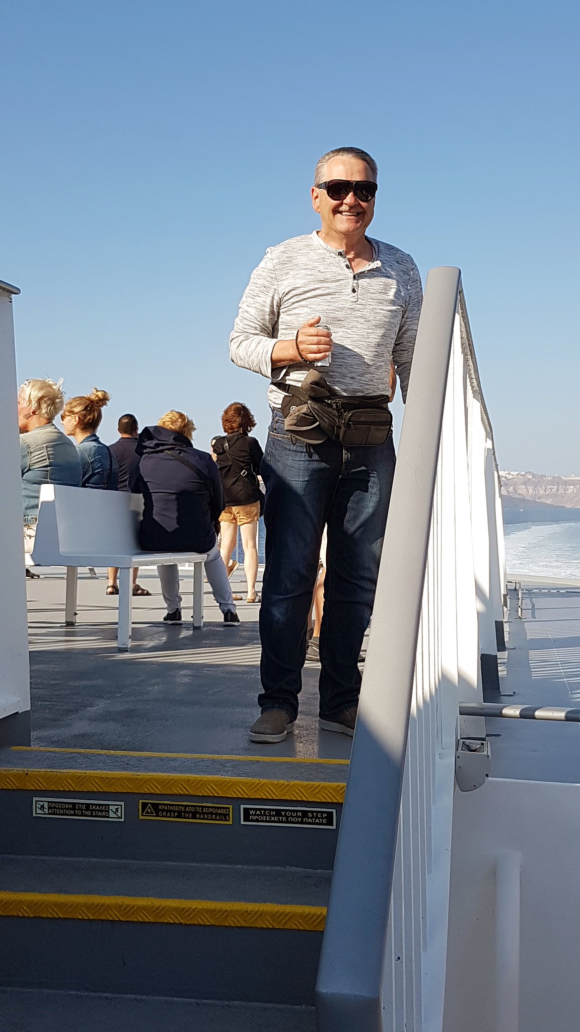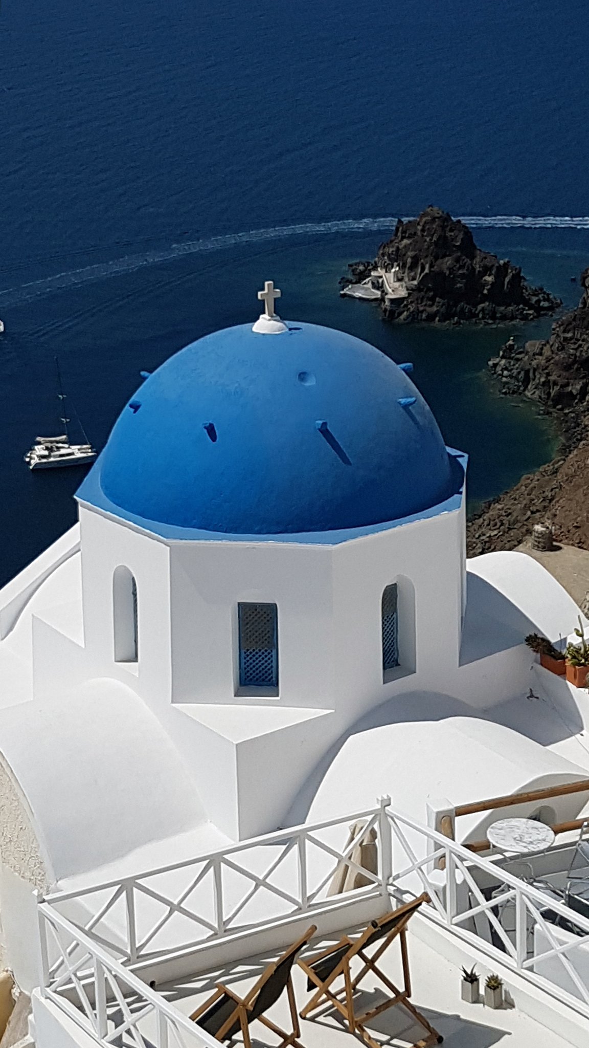 SKAROS ROCK IMEROVIGLI - direkt vor unserer Terrasse. Die Ruinen von Skaros sind heute ein beliebtes Ausflugsziel für Wanderer und Fotografen; die Landzunge ist über Imerovigli zu erreichen. Kein einfacher Auf- und/oder Abstieg und gutes Schuhwerk ist ein Must. Stefan hat den Skaros Rock bezwungen.