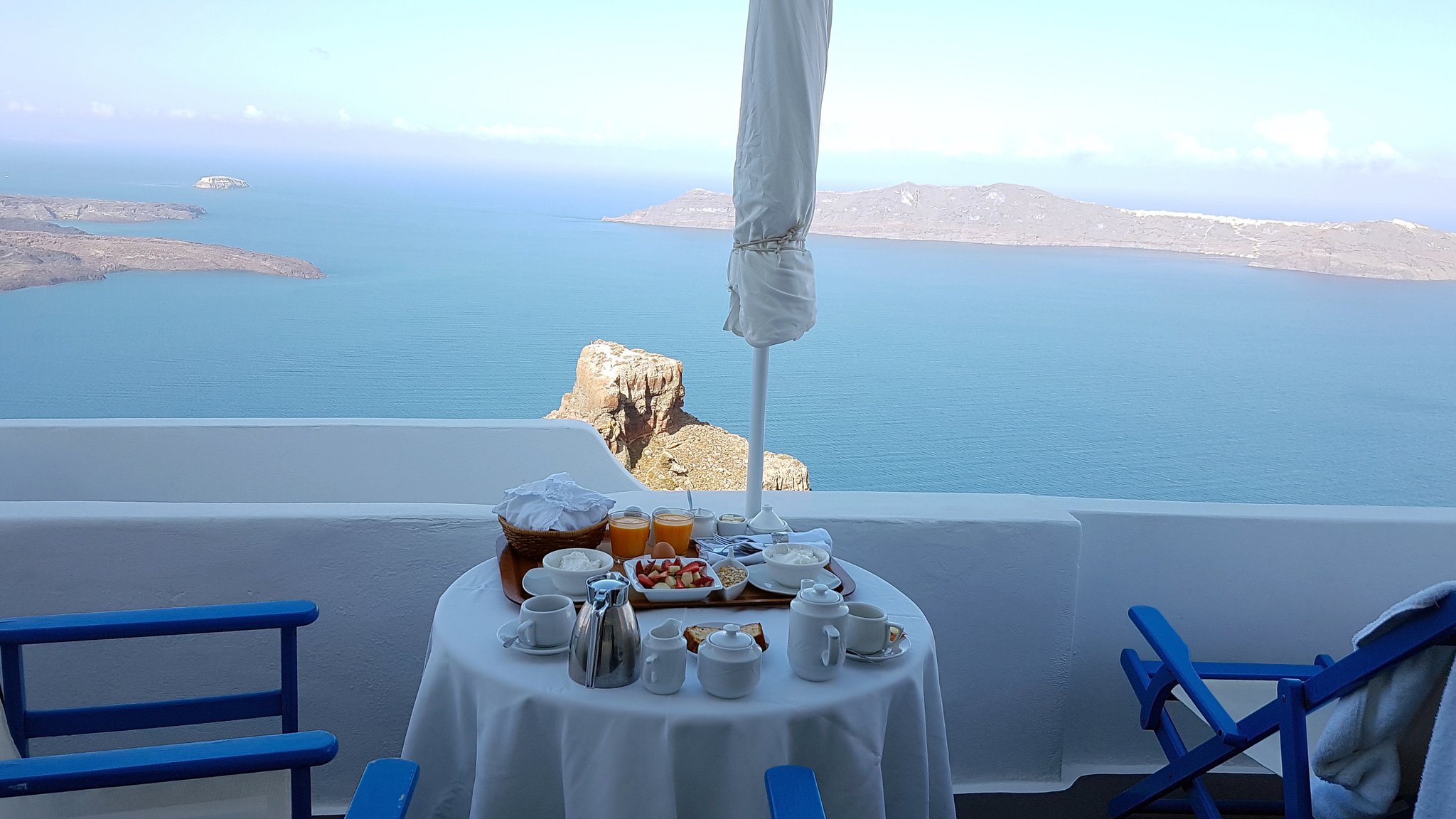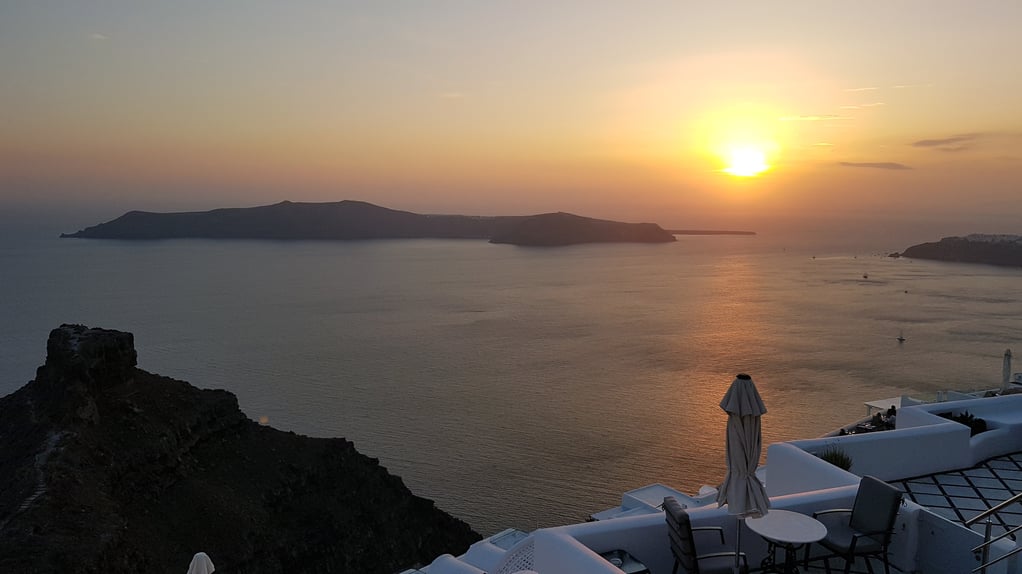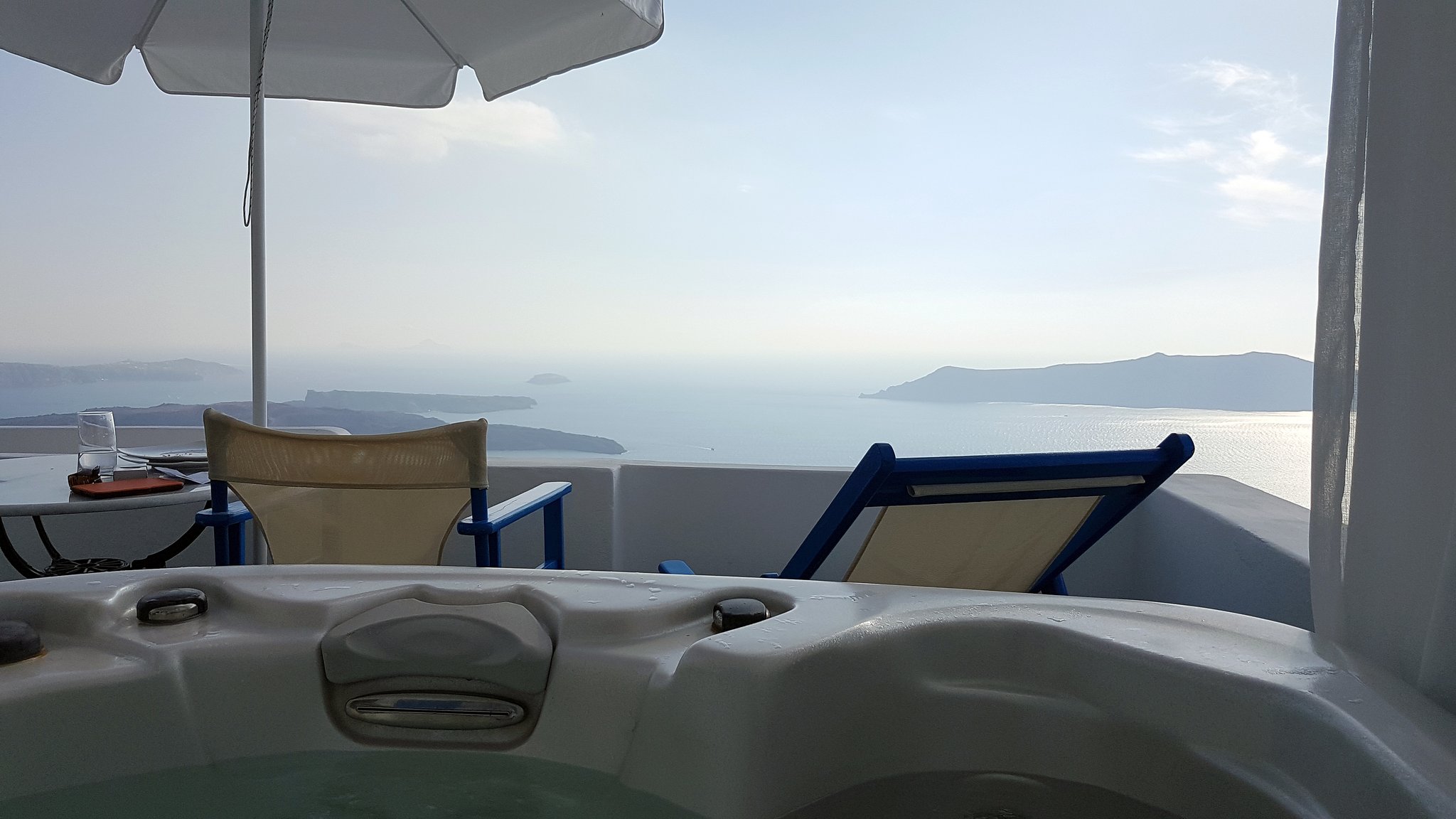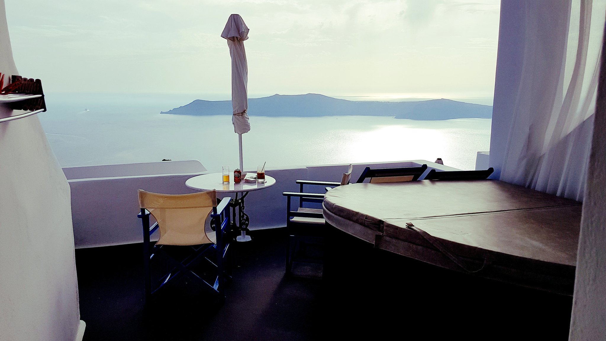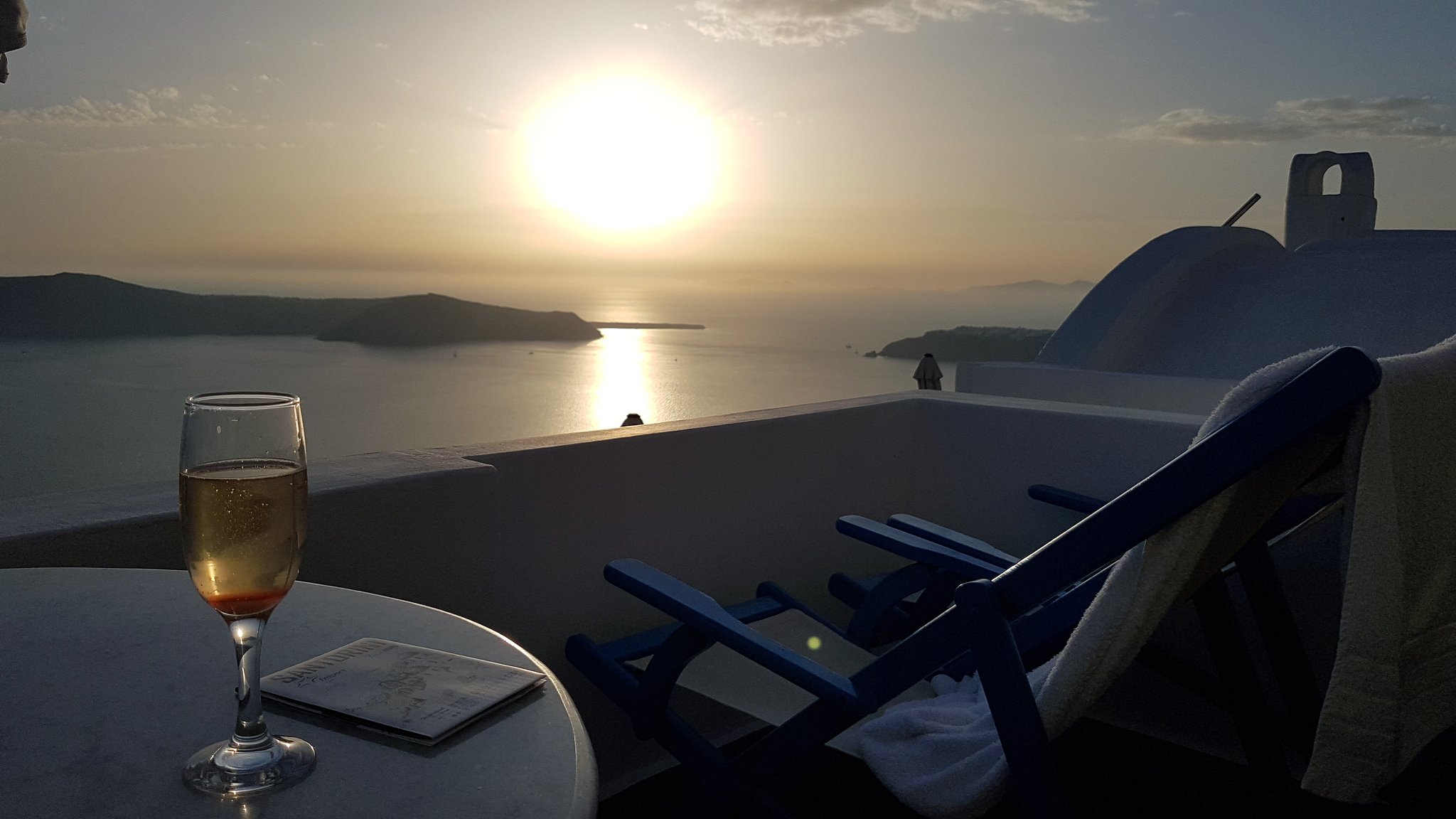 SKAROS ROCK IMEROVIGLI - direkt vor unserer Terrasse. Die Ruinen von Skaros sind heute ein beliebtes Ausflugsziel für Wanderer und Fotografen; die Landzunge ist über Imerovigli zu erreichen. Kein einfacher Auf- und/oder Abstieg und gutes Schuhwerk ist ein Must. Stefan hat den Skaros Rock bezwungen.