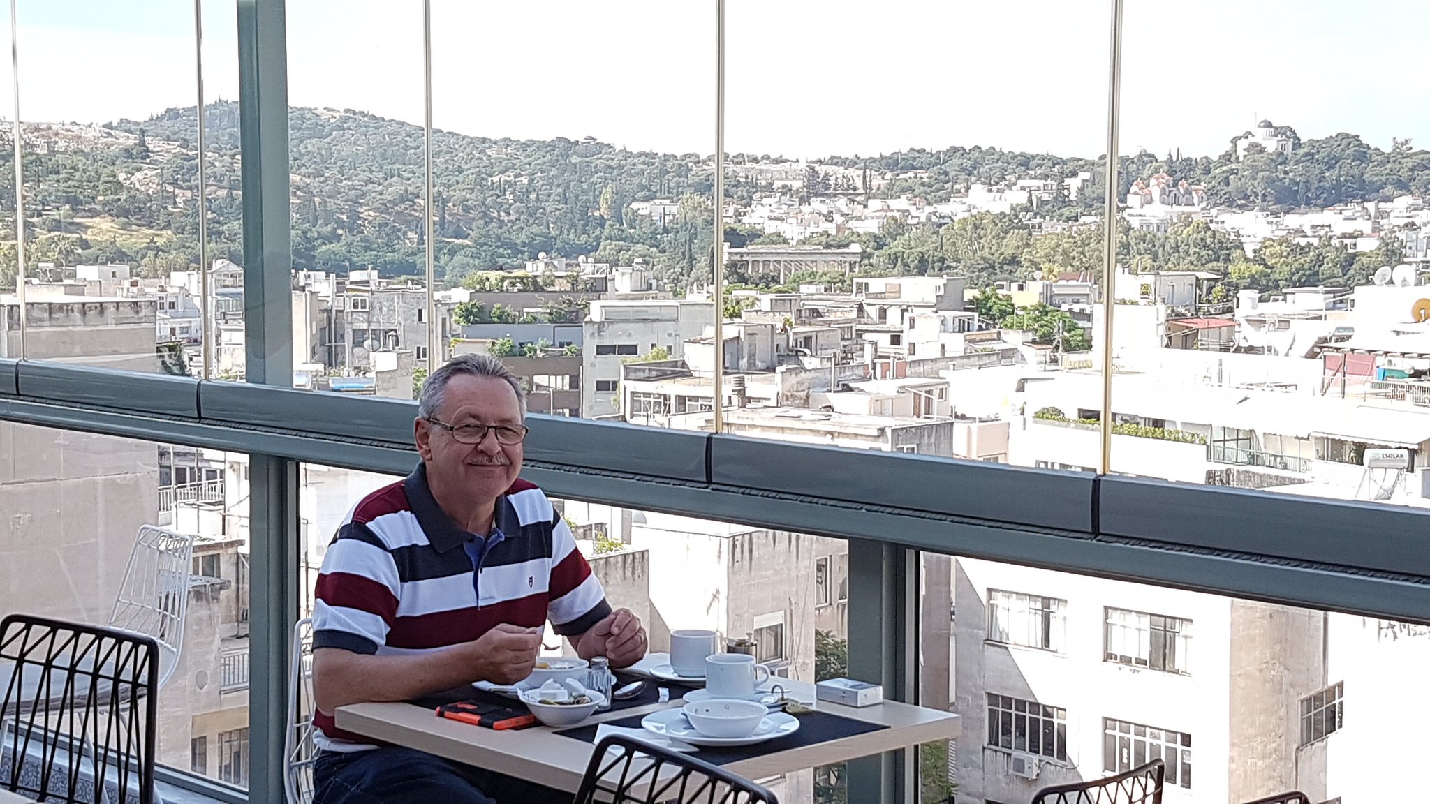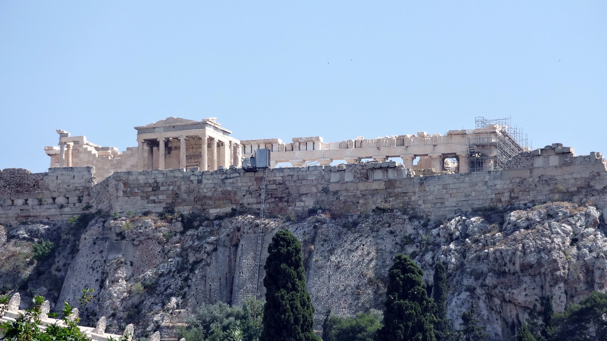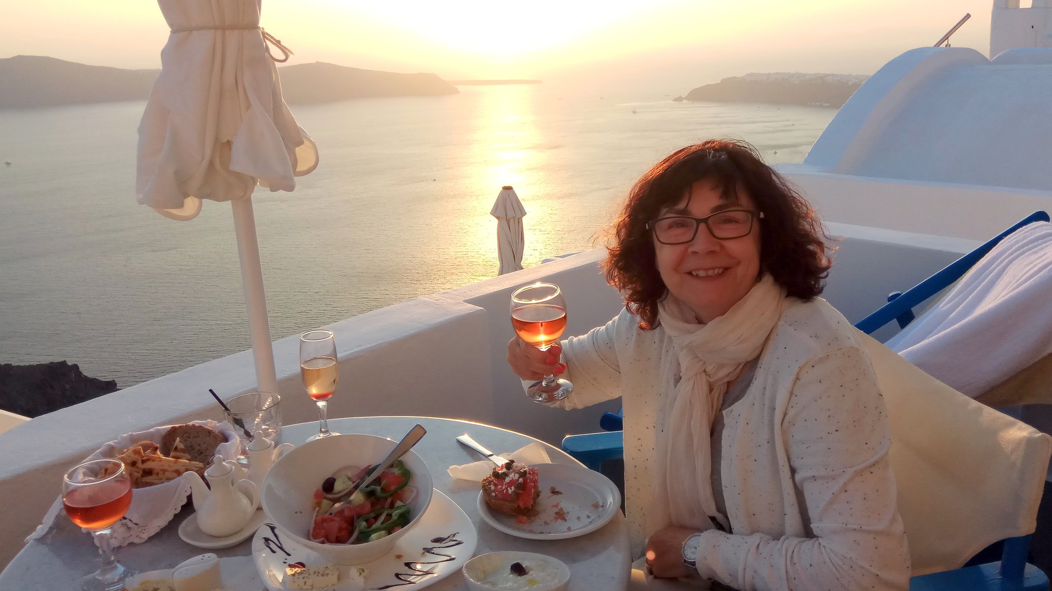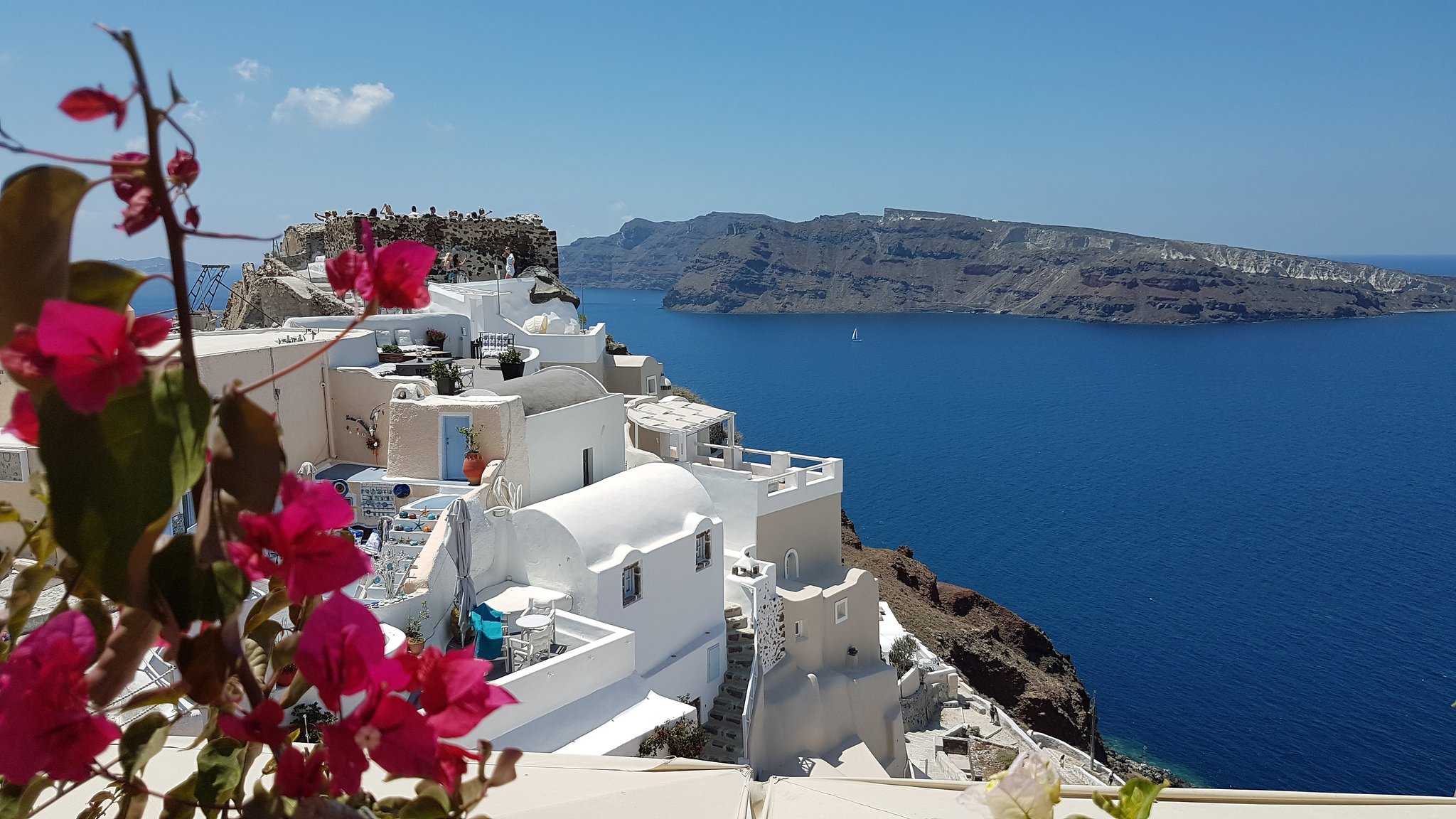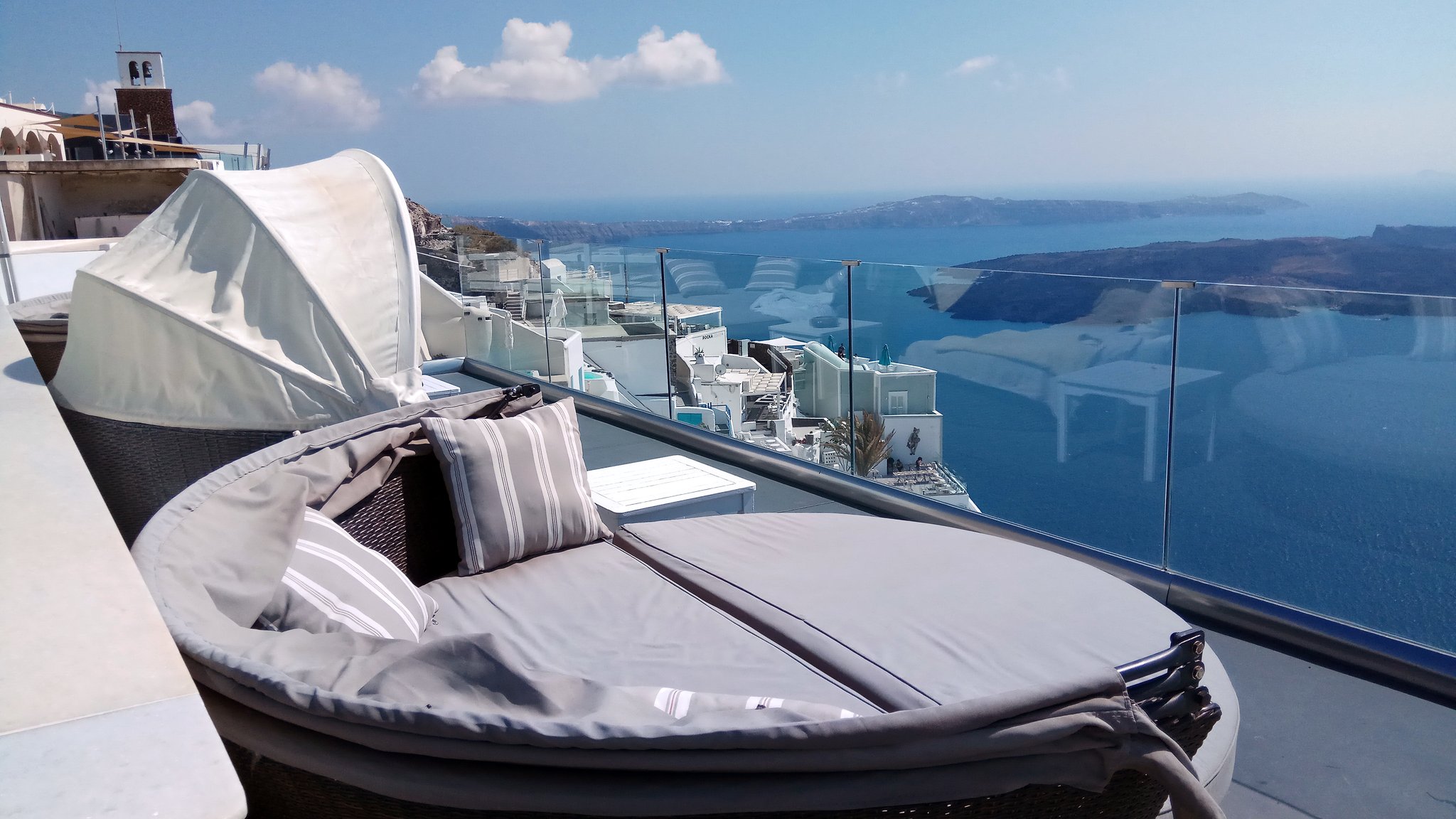 SKAROS ROCK IMEROVIGLI - direkt vor unserer Terrasse. Die Ruinen von Skaros sind heute ein beliebtes Ausflugsziel für Wanderer und Fotografen; die Landzunge ist über Imerovigli zu erreichen. Kein einfacher Auf- und/oder Abstieg und gutes Schuhwerk ist ein Must. Stefan hat den Skaros Rock bezwungen.