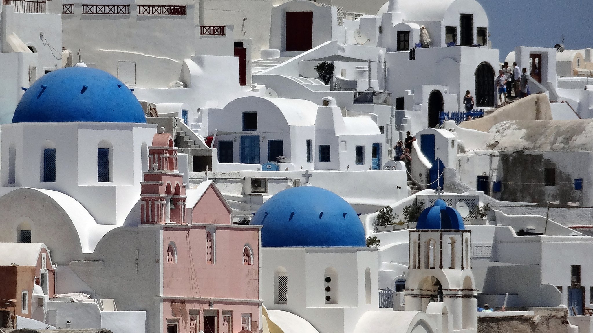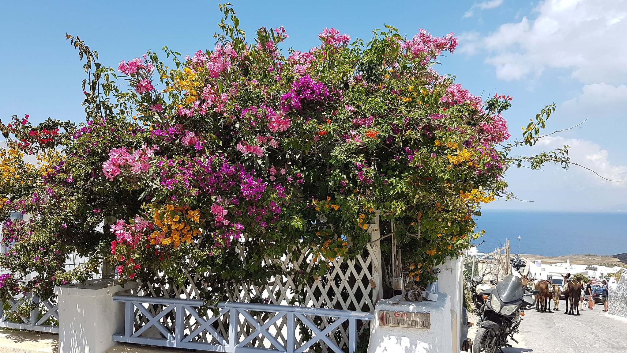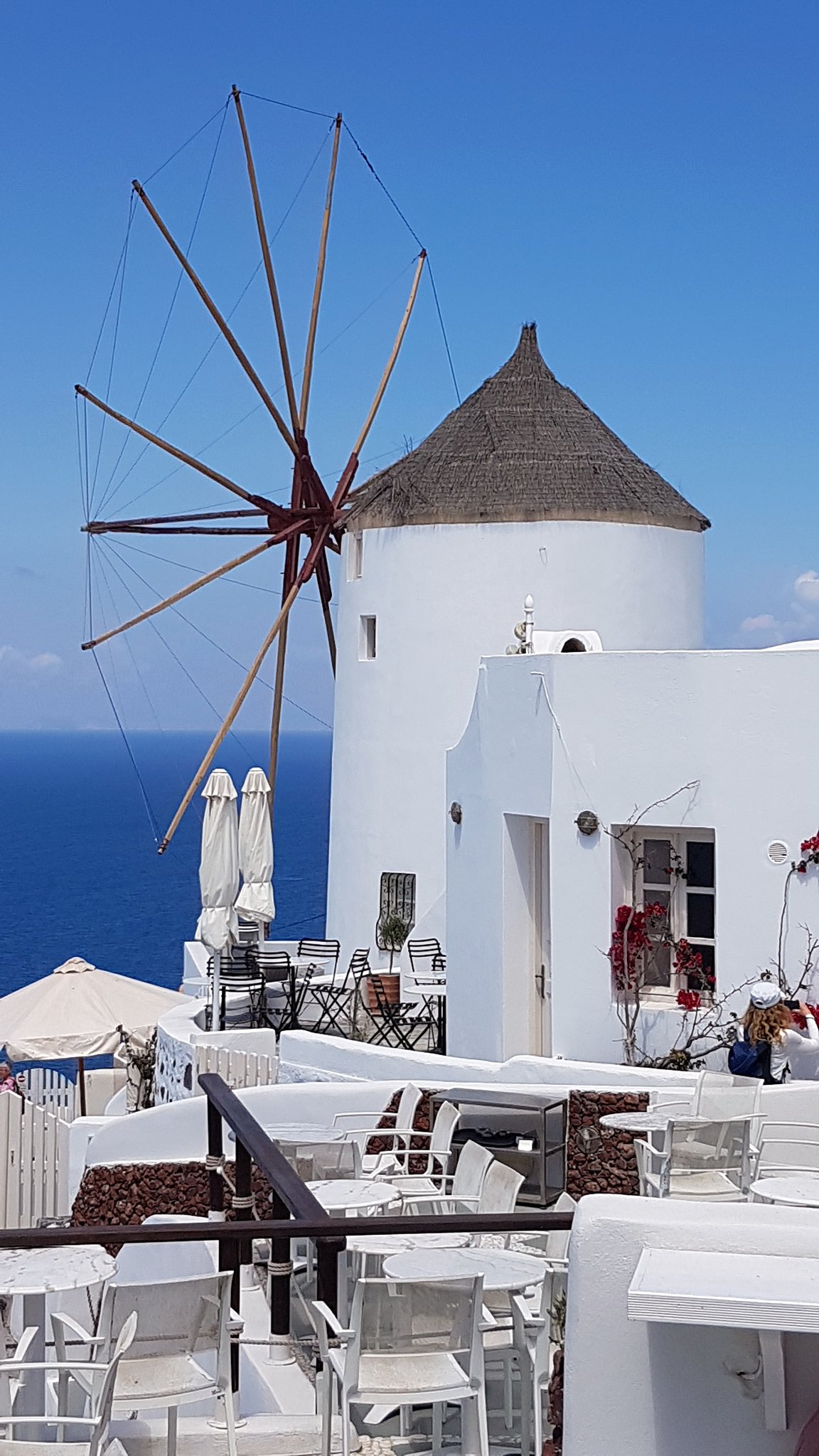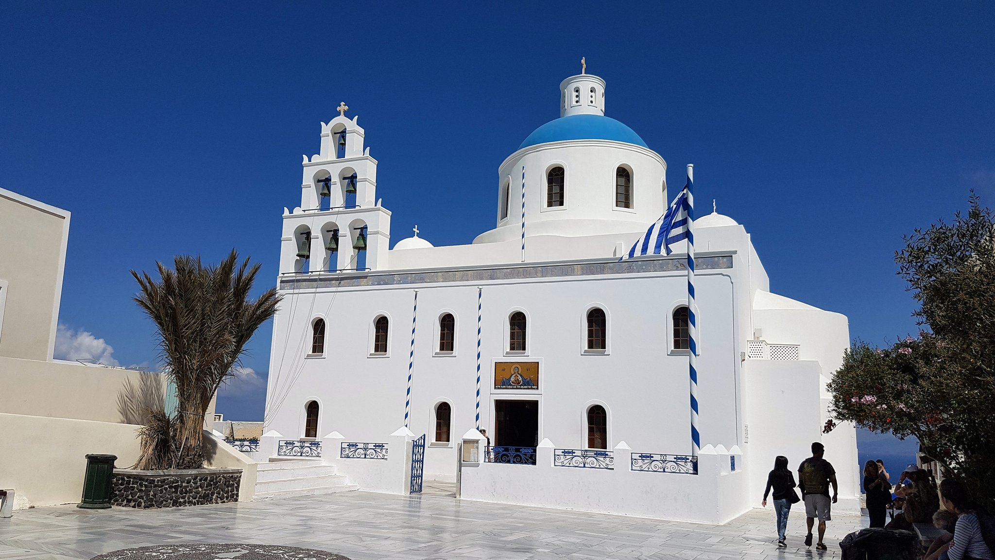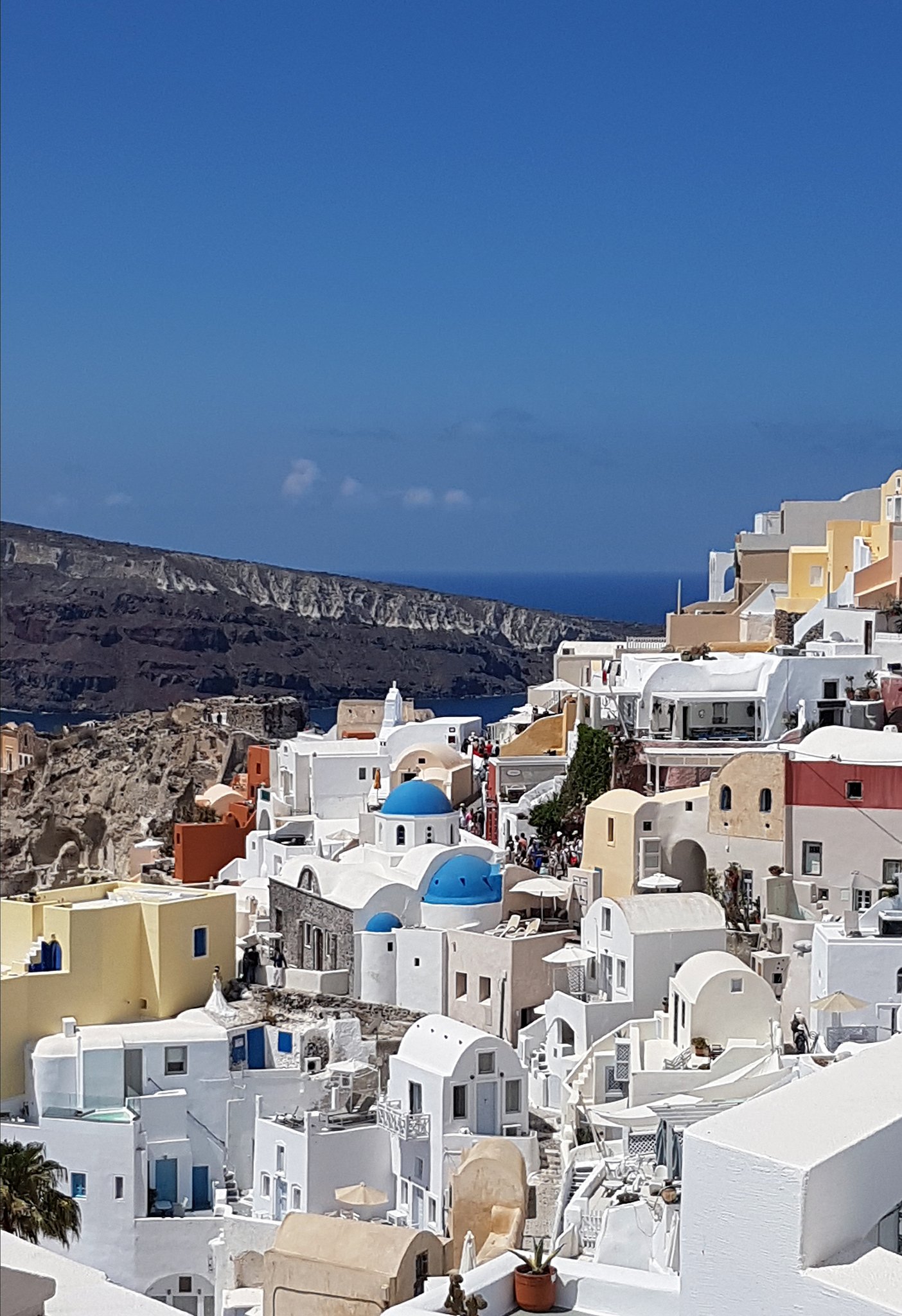 FIRA (Thira) - der bekannteste Ort auf Santorini - Anlegestelle der grossen Kreuzfahrtschiffe und geprägt von teuren Geschäften und Luxushotels. Es führt ein Fussweg am Kraterrand hinab zu einem kleinen Hafen - entweder zu Fuss, per Seilbahn oder Maultier.
