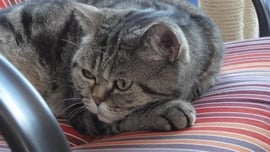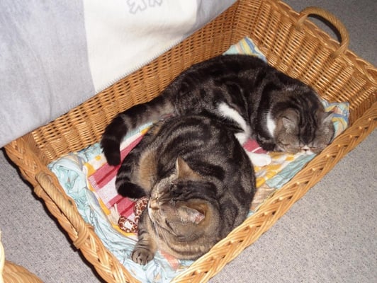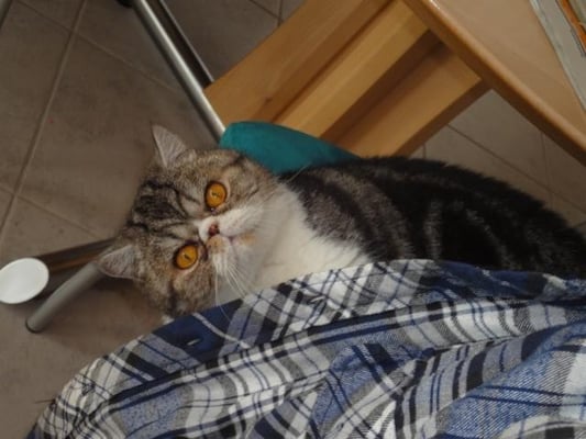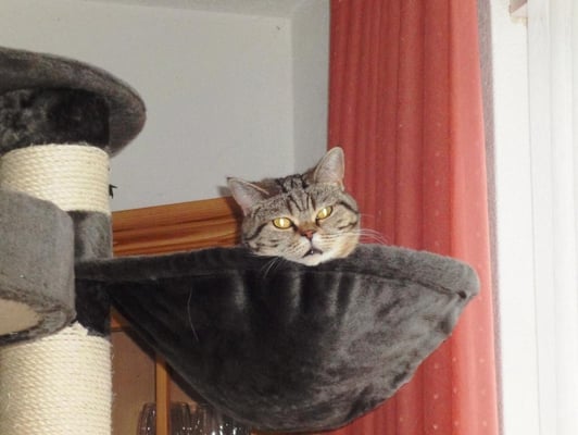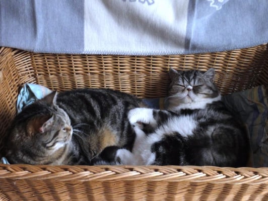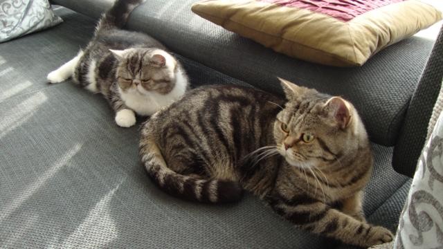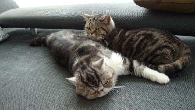 Ich bin der weibliche Part dieses unzertrennlichen Duos und gehöre zur British Shorthair Rasse. Zudem bin ich auch die ältere von uns beiden, geboren 2007 und die etwas überlegtere.