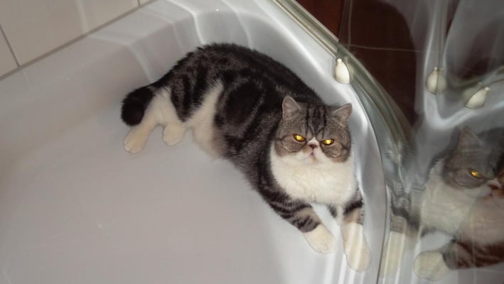 Meine Gefährtin kennt ihr jetzt schon - ich bin der wildere von uns beiden, auch wenn ich manchmal Pippa rufe, damit sie mir zur Seite steht. Ich gehöre zur Exotic Shorthair Rasse und bin 2008 geboren.